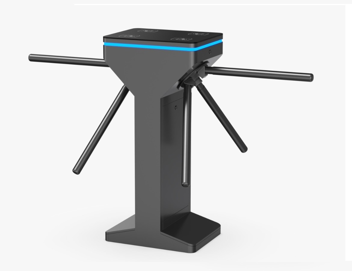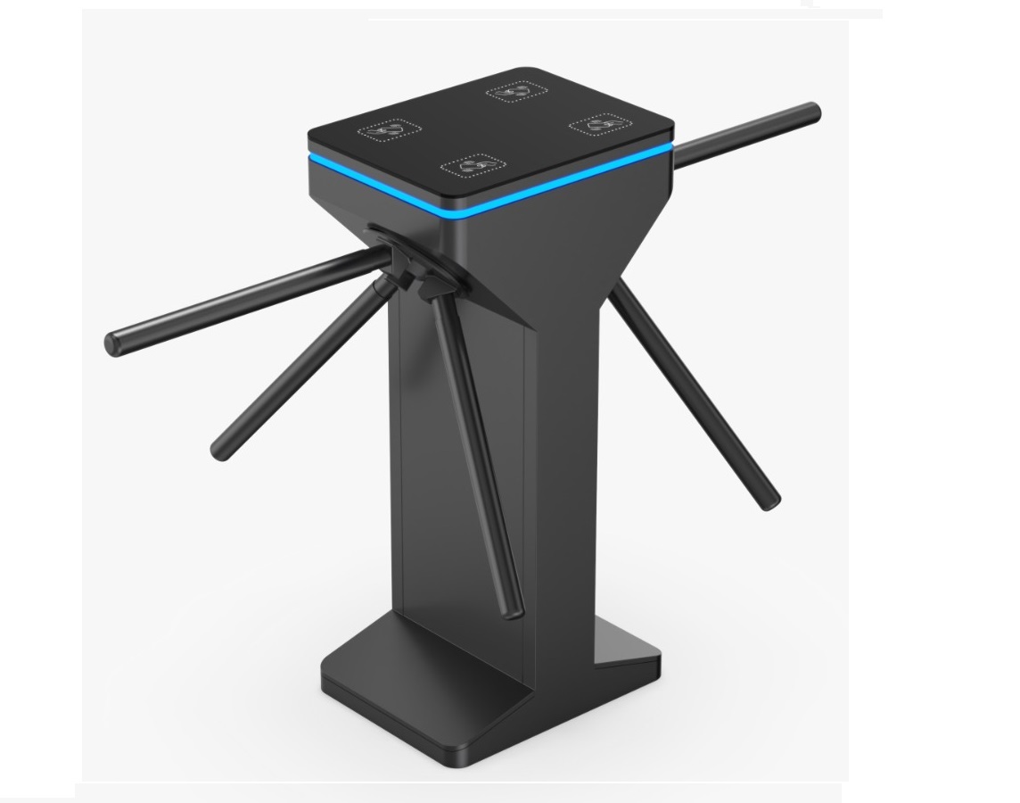 The Tripod BO-DSN50-DB-BK is a modern tripod turnstile featuring a dual-lane configuration within a single cabinet, providing two 550 mm passageways to significantly improve traffic efficiency while minimizing space usage. Its slim and elegant design makes it ideal for locations where aesthetics and functionality must coexist. The unit is equipped with a three-color LED indicator interface (blue, green, red), a temporary free-passage mode controlled by security personnel, and a counter output interface that records only actual passages rather than card swipes. Manufactured using mold-based production and robotic welding technology, the turnstile ensures long-term durability, precision, and reliable operation.